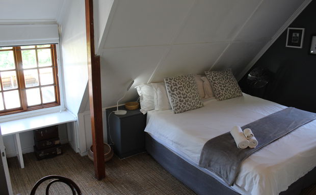King or Twin bedroom on the first floor with a view of the garden and mountain.